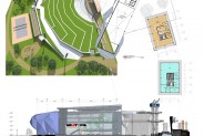All the soil dug out from the massive underground parking will be utilized to create a raised grassed mound. The mound is retained by the concrete wall on one side and forms the grassed amphitheatre with a stepped arena in front of the stage.